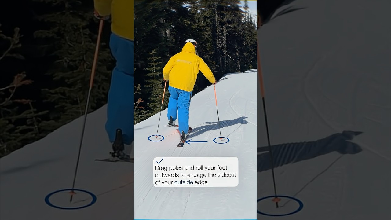 A short turn stays tight to the fall line — think quick windshield-wiper, not long arc