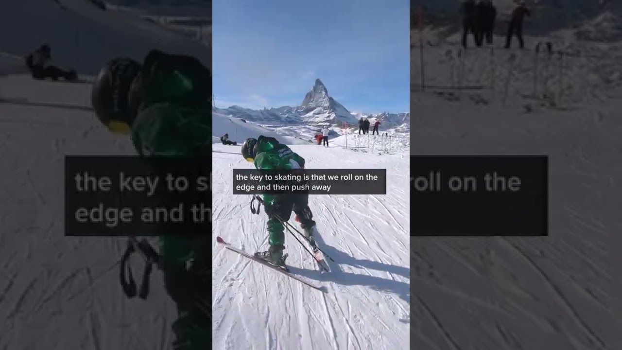 Angle the pushing ski so its inside edge grips the snow — without edge, there is nothing to push from